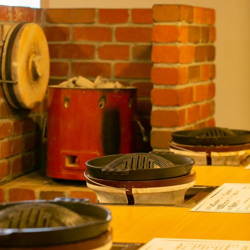 炭火に兜ナベを乗せて何を焼いても美味しさ間違いなし!